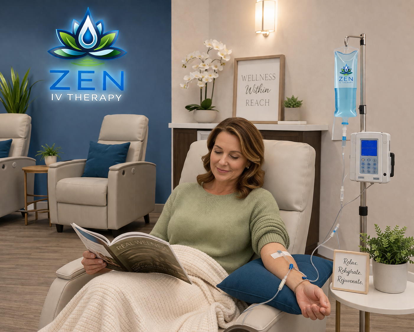 Relaxing hydration and wellness treatments in our comfortable Zen IV Therapy clinic.